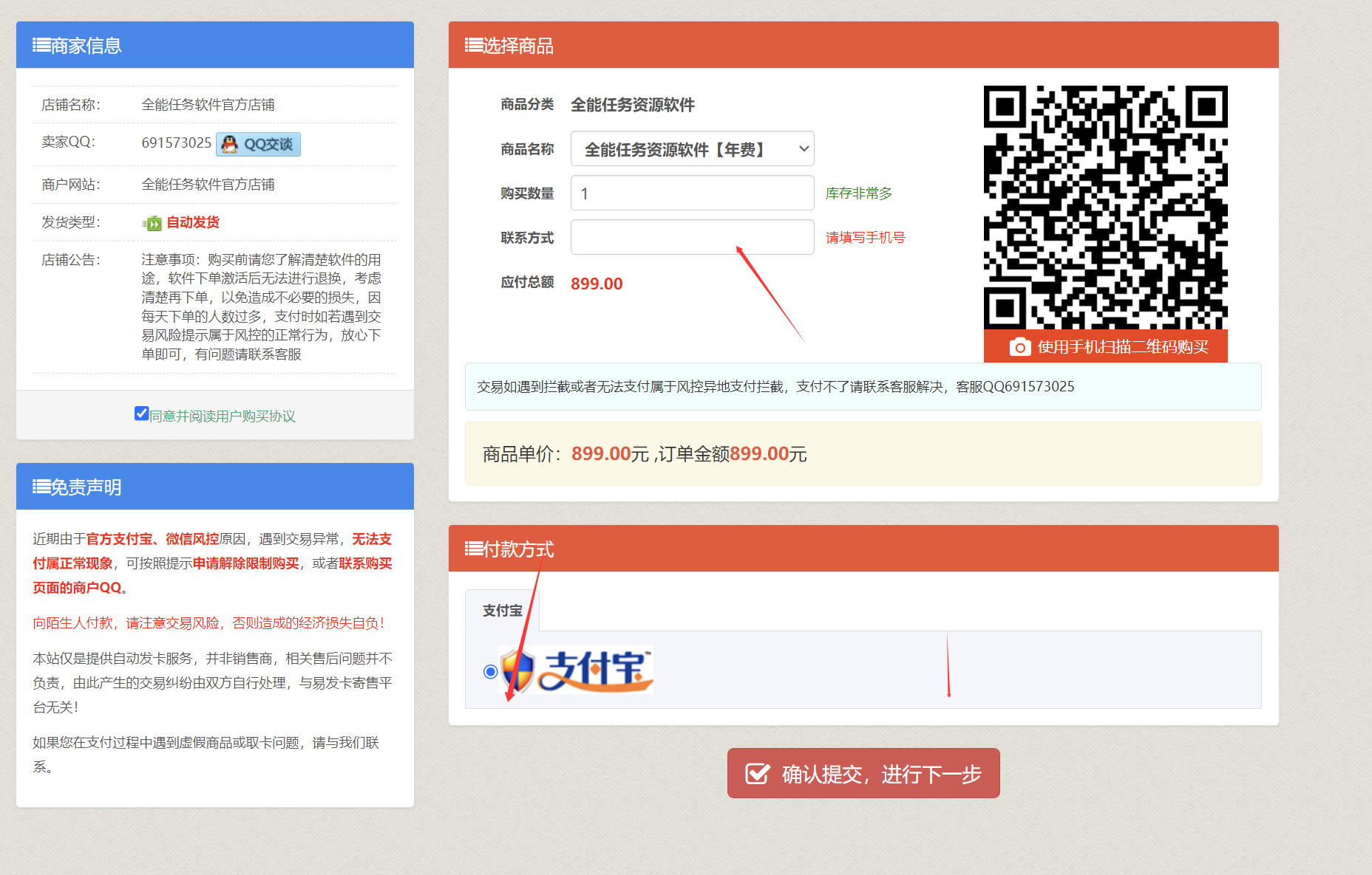 温馨提示:近期支付宝风控严格,所以异地支付经常触发风控导致支付失败等等,有小白看到难免担心,这个可以放心,我们不会傻到给你不能付款的支付码,这是属于支付宝风控,支付宝不行可以更换微信,如支付不了可以联系我们网站客服QQ小芳691573025